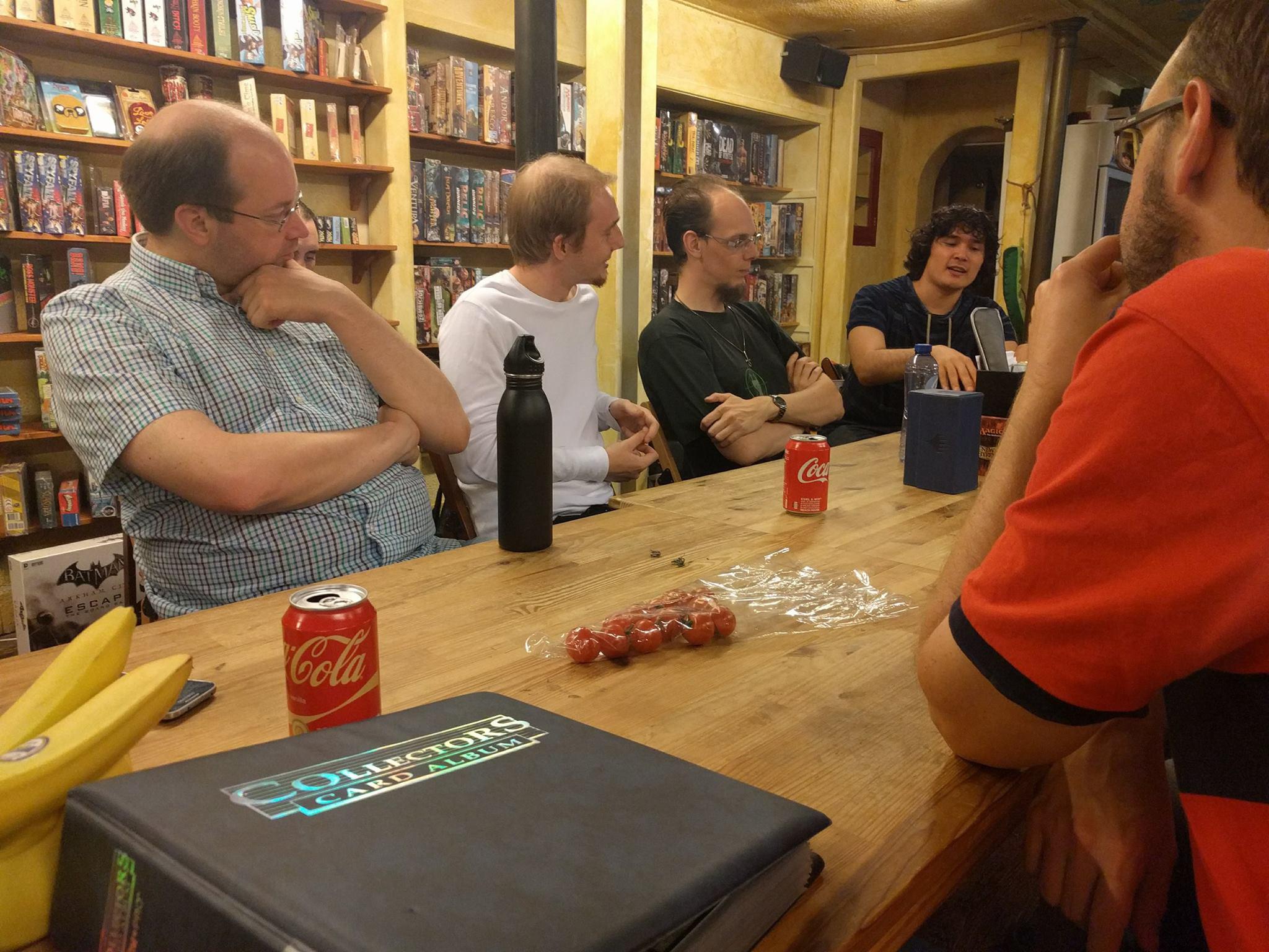 When more of our fellow judges arrived we started looking for something to do. “You’ve never played Judge Tower?” Toby asked with disbelief and a little while later we were playing some hardcore Magic with warnings hitting us in the face one after the other. When everyone had arrived we got down to the real business. Kenny tried out his seminar about communication, outside assistance and coaching players while answering questions as a judge. A very refreshing and intriguing subject which resulted in a discussion with creative examples. I feel we all learned from this exercise.
